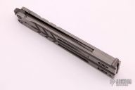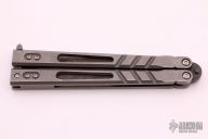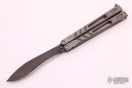 This Alpha Beast Balisong from Blade Runner Systems (BRS) features an acid washed kukri style blade. The handle has milled and stonewashed titanium frames with T latch on pommel. Excellent condition. Comes with original box and papers.