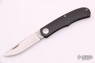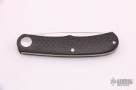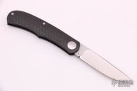 This Slipjoint by Jerry Halfrich features a hand rub satin finished blade with nail nick. The handle has carbon fiber covers stainless pins and pivot, stainless spring and spacer. Has halfstop. Nice flush lockup and centered blade. Marked 5 on the blade. Comes with zipper case. Knife has been carried and shows some wear. Good condition.