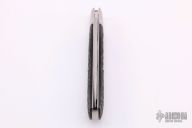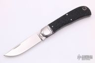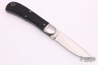 This slipjoint from Jerry Halfrich features a hand rub satin finish drop point blade with nail nick. The handle is comprised of fluted steel bolsters and jigged micarta covers with stainless steel pins over stainless steel liners and spring. Has some light scratches otherwise, excellent condition. Includes padded and zippered case. #5 on blade.