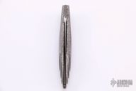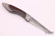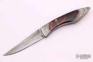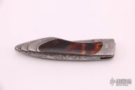 This Interframe Linerlock by Charles Bennica features a Damascus blade with notched thumbrest. The handle has a full Damascus frame with faux tortiose shell inlays with gold leaf backing, Damascus backspacer. Nice lockup, detent and blade seating. Comes with a zippered case. Excellent condition. Beautiful and truly flawless! Excellent+ condition.