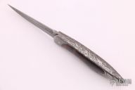 "When I began making knives in 1988, my background as a tool and die maker helped a lot in starting the fabrication. It had given me a foundation that allowed me to overcome technical difficulties I encountered through my first experiences; and I learned a lot by improvising in my own way. I have always given great importance to the consistent quality of my creations. In my shop I have traditional machines: Lathe, milling machine, pantograph, drill press, grinder, heat treating oven and lots of files and sand papers. Being a perfectionist, I push as much as possible the tolerances and during the whole manufacturing I measure my parts so that they fall within strict criteria in terms of size, finish and hardness."