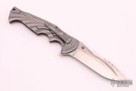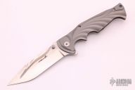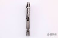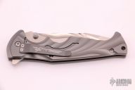 This Tighe Breaker by Brian Tighe features a satin finished blade with milled flats, dual thumbstuds and a flipper. The handle has a bead blasted and milled titanium frame with a tip down titanium clip. Nice action, lockup and blade seating. Excellent condition. Comes with a zippered case.