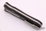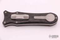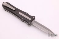 This knife is a Deadlock Model B. It has a dagger style stonewashed blade. The handle has a carbon fiber and titanium frame with a tip down spring clip, anodized titanium. The thumb slide on the handle is also titanium and handle has titanium overlays. Comes with a drawstring bag. Grant and Gavin Hawk set out to create a double action OTF with no blade play.... They did it, NO blade play. Comes with tool and lube.   New Condition.