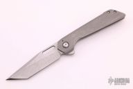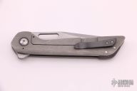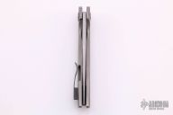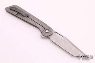 This knife by Nova Blades features a tumble finished blade with false top edge, thumbhole and flipper. The handle has a tumble finished titanium frame with a zirconium tip up clip, backspacer and pivot collars. Rides on bearing, nice detent, lockup and blade seating. Includes a zippered case and COA, Dated 08/2018. Excellent Condition.
