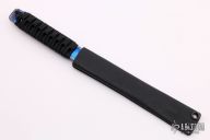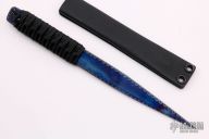 In 1988, he began making specialized knives for use by the military. This turned out to be fortunate turn of events, both for Mick and for the knife using world at large. Mick’s approach was to not get burdened by the weight of past designs. He started with a tabula rasa, a clean slate, informed only by his own experiences and knowledge of what a soldier needed in a knife. The knives he made didn’t look like the hunter-inspired knives seen in most PXs; instead they were almost brutish in their functionality: beefy, solid, and with unbreakable ¼” stock full tangs. These knives were the first indication of his innovative approach: in addition to their utilitarian design, the knives carried a subdued finish and subdued sheaths. No one carrying a Strider knife was going to be spotted because of sunlight glinting off of polished steel or a glossy leather sheath. Soldiers, policemen, and other men going into harm’s way couldn’t buy them fast enough. Mick sampled some good ideas, but made them great. For instance, he was not the first to wrap a knife handle with paracord, but he was the first to do it in a way that was tough enough for sustained infantry use. His knife line grew over the following years to include different varieties of fixed blades, all distinctive and many with specialized uses. But constant in all of them was a disregard for convention, and a desire to try new ideas. An example of this was the Ajax – it featured a very wide blade surface clearly designed to inflict damage. It drew on the weapons carried by Roman legionnaires, yet was modern and usable in the 21stCentury battlefield. Mick also worked on his technical skills, always striving to become better at the physical craft. At the 2002 Blade Show, a group of the best tactical knifemakers in the country decided to compete with each other to produce the most innovative and interesting fixed “battle blade” at the show. Mick’s entry, an incredible integral knife made out of ½” titanium stock with a zippered composite blade, gorgeous handles, and integral guard was the unanimous winner, and effectively retired the competition.