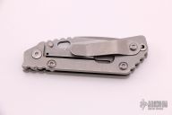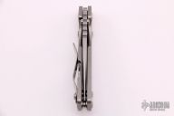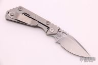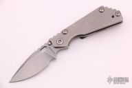This PT by Mick Strider features a stonewashed blade with notched thumbrest and thumbhole. The handle has a stonewashed titanium frame with matching tip up clip. New condition.