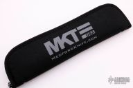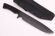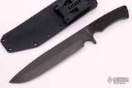 This camp knife by Medford knives features a black PVD blade with .291" blade stock and 1.640" blade depth, full tang construction with black G-10 scales. Comes with a black kydex sheath, zippered case and papers. Excellent condition.