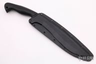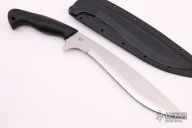 This Kukri style fighter/camp knife by Pacific Cutlery has a satin finished blade and textured hard rubber handle. .177" blade stock and 1.629" blade depth, hidden tang construction. Has a kydex sheath. Has a few light scratches, otherwise excellent condition.