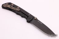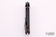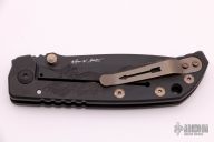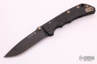 This Harsey framelock folder by Spartan Blades features a black drop point blade with dual thumbstuds and a notched thumbrest. The handle has a black PVD titanium frame with a laser engraving a tip up titanium clip and filler tab. Has nice detent, lockup, and blade seating. Comes with original box. Excellent condition.