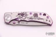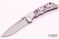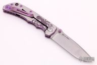 This Harsey framelock folder by Spartan Blades features a stonewashed drop point S45VN blade with dual thumbstuds and a notched thumbrest. The handle has an anodized titanium frame with a laser engraving a tip up titanium clip and filler tab. Has nice detent, lockup, and blade seating. Comes with original box. Excellent condition.