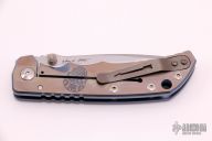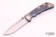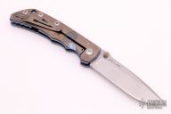 This Harsey framelock folder by Spartan Blades features a stonewashed drop point blade with dual thumbstuds and a notched thumbrest. The handle has an anodized titanium frame with a laser engraving a tip up titanium clip and filler tab. Has nice detent, lockup, and blade seating. Comes with original box. Excellent condition.