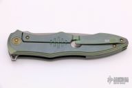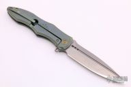 This 613C model comes equipped with a green titanium handle and a stonewash finished spear point blade. The We Knife Co. 613 flipper offers a large ergonomic design, built to tackle your toughest cutting chores. It has a high performance Bohler M390 steel blade and a titanium frame lock handle with a titanium pocket clip and back spacer. The handle is contoured on the spine and belly for maximized comfort in hand. Bronze anodized hardware finishes off the appealing design.
