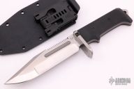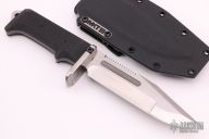 "For those of you who love the TBF (Too Big to Fail) Breakdown Fighter, but find the size a little too daunting, the USMC Raider is just for you! Our slightly smaller version of the TBF maintains all the wicked attributes of the larger knife, with an easy-to-carry size. It has the same radical combo grind using flat grinding on the tip for strength and hollow grinding on the main edge for razor sharp use over the years. The serrations are double row and razor sharp. The hardened S35VN hilt is a built-in crowbar and unbelievably tough. Finally, the through-tang knife completely disassembles for thorough cleaning with a single Allen wrench. Has a kydex sheath. Light scuffs are visible on the blade otherwise the knife is in Excellent condition.