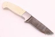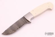 This Hunter by D'Alton Holder features a Damascus blade with .190" blade stock and 1.105" blade depth, full tapered tang construction. The handle has stainless steel bolsters, mammoth ivory scales. Comes with a zippered case. Has some light scratches, some oxidation on the blade and one of the scales has separated from the tang slightly, otherwise fair condition.