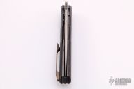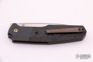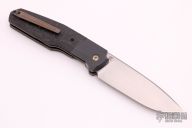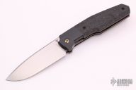 This linerlock was designed by Philippe Jourget and manufactured by CKF. This knife features a hand rub satin finished drop point blade with a file worked thumbrest. The handle is composed of titanium liners, zirconium bolsters and backspacer, marble carbon fiber scales. Titanium tip up pocket clip. Includes a padded Velcro case, COA and extra hardware. Has a couple light scuffs/scratches, otherwise excellent condition.