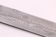 Visit this maker's website: Old Pine Forge. Keith has been a farrier for over 25 years, a blacksmith for over 25 years,and a knifemaker for over 10 years. He forges his own High Carbon Damascus 550-2000 layers and forges High Carbon 5160, 01, 1085 and 1095 steels. He also uses ATS 34 for his skinner and tactical knives. His handle materials are exotic woods, stag, horn and bone, often set with semi-precious stones set in the handles.