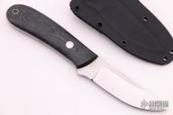 This K-16 Yukon Pro Skinner by Dozier Knives features a satin finished blade with .133" blade stock and 1.018" blade depth, full tang construction. The handle has black linen micarta scales with aluminum pins and lanyard hole. Comes with kydex sheath with belt clip. New from maker.
