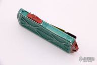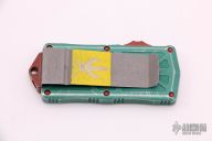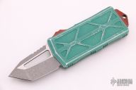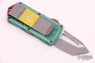 This Microtech Exocet features an apocalyptic finished tanto blade. The handle is comprised of a distressed green aluminum handle and a stainless clip that doubles as a money clip dated 12/2020 S/N 524. Comes with original box and papers. Excellent Condition.