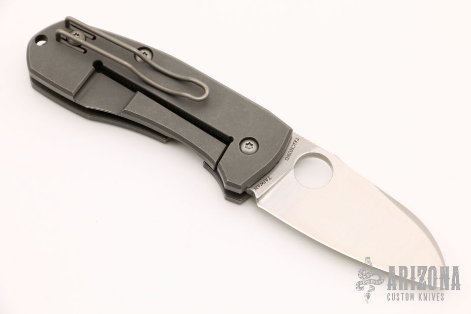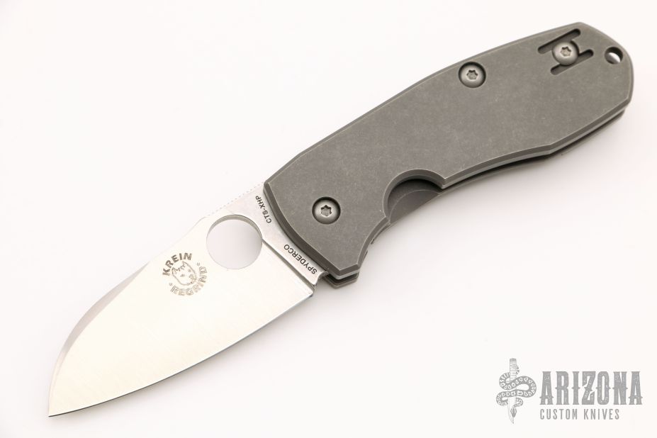 The Spyderco Techno 2 is a variant of the first Techno, equipped with an attractive sheepsfoot blade and standoff construction rather than the original's drop point blade and backspacer. The Polish knifemaker Marcin Slysz gave his Techno folder a progressive European appearance. This model falls into Spyderco’s “Little Big Knives” category, meaning it features a smaller blade and handle, paired up with a hard-duty locking mechanism, premium blade steel and vault-like construction found primarily on larger hard-use knives. A reversible deep carry pocket clip finishes off the solid Slysz design. Features: Classic thumb hole opener and a reversible wire pocket clip allow for ambidextrous use. Thick CTS-XHP steel blade has a high saber grind for advanced edge geometry and strength. A high strength Reeve Integral lock provides secure blade lock up. Excellent condition. Comes with original box and papers. This knife has been reground by Tom Krein.