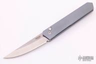This Kwaiken Auto is a collaboration between Boker, Lucas Burnley and Pro-Tech Knives. It features a tumbled 154CM blade. The handle is grey aluminum with a stainless steel tip up clip and push button. Excellent condition. #806