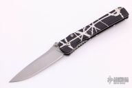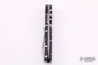 This linerlock folder by Rob Dalton features a bead blast blade and an anodized aluminum frame. Titanium clip, tip up carry. Smooth action. Nice detent, and lockup. Very nice work. Excellent condition. #046