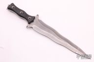 This Busse Combat Kris P Bacon 9.8 features a Competition Finished double-edged blade with corrugated bevel technology, .205" blade stock and 1.972" blade depth, full tang construction. The handle has Magnum Textured Black G-10 scales. Excellent condition.