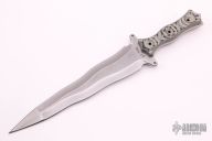 This Busse Combat Kris P Bacon 9.8 features a Competition Finished double-edged blade with corrugated bevel technology, .205" blade stock and 1.972" blade depth, full tang construction. The handle has Magnum Textured black/grey G-10 scales. Excellent condition.