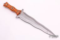 The KPB 98 takes the historical design of the Kris to a whole new level of performance! The gentle, multiple recurves continuously draw whatever is being cut into the edge and increases the actual length of the cutting edge beyond what would it would be if it possessed a standard straight geometry. The weakest part of the Kris design has always been the strength of the tip. This is no longer the case with the armor piercing reinforced convex geometry of the KPB 98. The balance is excellent, making this large blade feel light and fast.