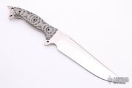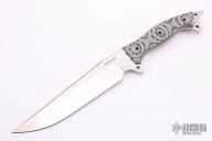 This Urgent Fury by Busse features a satin finished drop point blade, .214" blade stock and 1.853" blade depth, full tang construction. The handle has tan/black G-10 scales, extended tang with lanyard hole. Excellent condition.