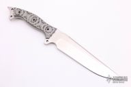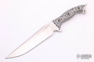 This Urgent Fury by Busse features a satin finished drop point blade, .214" blade stock and 1.820" blade depth, full tang construction. The handle has tan/black G-10 scales, extended tang with lanyard hole. Excellent condition.