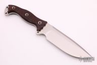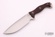 This Custom Shop Nano Fusion Natural Outlaw features a satin finished drop point blade with false top edge, .208" blade stock and 1.796" blade depth, full tang construction. The handle has hand sculpted black/red G-10 scales with a lanyard hole at the butt.  Excellent Condition.