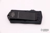 This Microtech Exocet features a black double edged blade with satin flats. The handle is comprised of black aluminum handles and a stainless clip that doubles as a money clip dated 01/2020 S/N 4763. Comes with original box and papers. Excellent condition.
