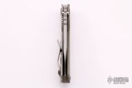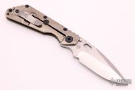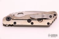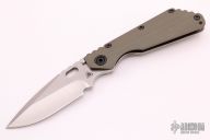 This MSC PDW SMF CC by Strider Knives features a hand ground blade and od green contoured G-10 with laser engraved titanium handle and matching tip up titanium clip. Notches on thumbrest, rear of handle, and early lockup. Includes Hinderer "Lock Bar Stabilizer" for maximum reverse lock retention. Nice detent, lockup and blade seating. New condition.