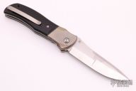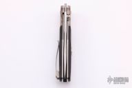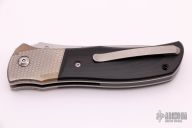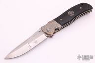 This Century Starfighter from Bob Terzuola features a tumbled blade with dual thumbstuds. The handle has super conductor bolsters, black G-10 scales with orange peel finished titanium liners, black backspacer, tip up titanium clip with hidden screws, lanyard hole. Nice detent, lockup and blade seating. Excellent condition.
