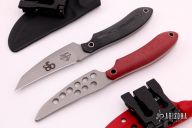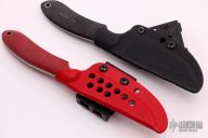 This Disciple trainer by ShivWorks is a Trace Rinaldi design, it has a bead blast blade. The handle has red G10 scales. Kydex sheath. Has a few light scratches on the blade, otherwise excellent condition.