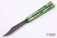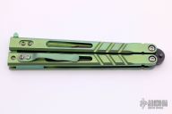 This Alpha Beast Balisong from Blade Runner Systems (BRS) features a tumble finished clip point blade. The handle is comprised of milled and anodized titanium with T latch on pommel. Excellent condition. Comes with original box and papers.