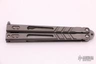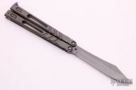 This Alpha Beast Balisong 3.0 from Blade Runner Systems (BRS) features a tumble finished clip point blade. The handle is comprised of millled and tumbled titanium with T latch on pommel. Excellent condition. Comes with original box and papers.