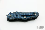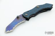 This liner lock by Warren Thomas features an anodized titanium and lightening strike carbon fiber chisel ground blade.  The handle has lightening strike carbon fiber scales and a matching tip up pocket clip.  Includes a padded zippered case.  Excellent Condition.