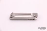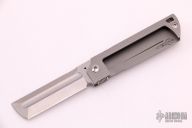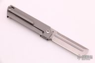 The SpaceX DP Flipper was developed as a possible company knife for SpaceX and is being evaluated by employees at this time. Its complexity is in its simplicity. It is sleek and simple, but with a complex 6 face grind with fuller. It is a modern take on your grandfather’s pocketknife. It is a pleasure to hold and use. The Blade is CPM-S35VN high grade knife steel and the handles are textured titanium. It is 5.25 inches opened and 3.25 inches closed. Includes leather belt sheath. Excellent condition.