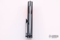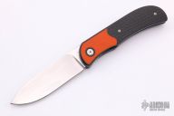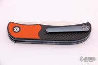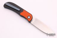This LEXK Plus by Trevor Burger features a hand rub satin finished blade, notched front flipper and thumbrest. The handle features carbon fiber scales with inlaid orange G-10 bolsters, anodized titanium liners and tip up clip. Comes with a zippered case. Excellent Condition. Comes with COA dated May 2019.