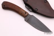 This knife is dedicated to the ‘woodcraft’ lifestyle. The overall balance of handle to blade encourages the user to get into the cut, with the thumb ramp adding extra power to heavy cutting. The WK Woodsman has an extended skeletonized tang that is useful for light hammering. Knife Specifications Blade steel: 80CrV2 Black oxide no-glare finish Blade length: 4 1/4" Overall length: 8 3/4" Blade thickness: 3/16" Skeletonzied full tang Thumb index file work Sheath Lined Kydex® with leather cover Designed for multiple carry options (See our Info page for carry options) Has some scuffs on the finish, otherwise good condition.