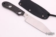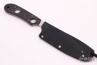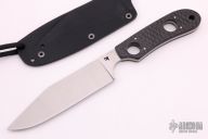 This Fred Perrin Bowie has a satin finished stainless steel clip point blade with full tang and notched thumbrest. Blade width is .114", depth is 1.085". Handle is carbon fiber scales. Comes with Kydex sheath and original packaging. Has some light sheath marks, otherwise excellent condition.