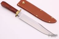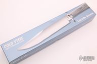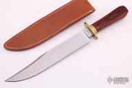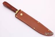 This Laredo Bowie by Cold Steel features a satin finished blade with sharpened top edge, .300" blade stock and 1.575" blade depth, hidden tang construction. The handle has a brass guard and dymondwood grip. Comes with original box and brown leather sheath. Excellent condition.