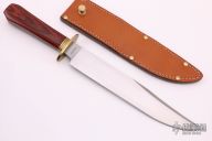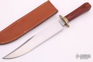 This Laredo Bowie by Cold Steel features a satin finished blade with sharpened top edge, .300" blade stock and 1.575" blade depth, hidden tang construction. The handle has a brass guard and dymondwood grip. Comes with original box and brown leather sheath. Excellent condition.