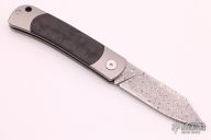 The QSP falcon is a traditional slip joint knife dressed up in titanium and carbon fiber scales, and a Chinese Damascus blade. It opens beautifully on a smooth slip joint spring. Comes with a premium leather sheath. Excellent Condition.