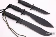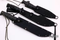 This SPEC PLUS Set by Ontario Knife Company has been Discontinued. It comes with the SP-11 Bolo, SP-17 Quartermaster, and the SP5-95 Survival. They all have black powder coated blades with57-59 HRC, Comfortable non-slip Kraton Handle. Black nylon sheaths. All in excellent condition.