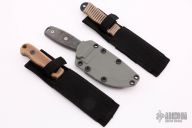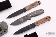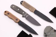 Comes with a pair of Ontario Shivs. Both with black blades, one has cord wrap and one has natural canvas micarta scales. Both come with black nylon sheaths. Excellent condition. 4" blade and 8.5" overall. Both Excellent condition.