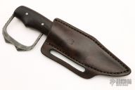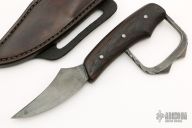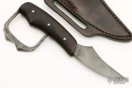 This Hawkbill by Paul Cooper features a hand forged antique finished blade with false top edge, .205" blade stock and 1.081" blade depth, hidden tang construction. The handle has wood scales with a forged knuckle guard.  Comes with a brown leather sheath. New from maker.