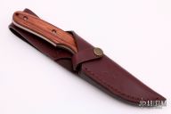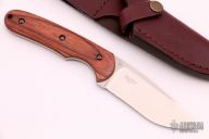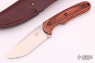 This Large Activator by Benchmade is a Snody design. It features a .140" thick tumble finish blade with 1.240" blade depth, full tang construction. Notched thumbrest. Wine Wood scales. Comes with brown leather sheath. Excellent condition.