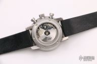 43mm GV2 by Gevril limited edition automatic stadium chronograph, ref. 4006R. It is #36/500 made. The movement is a Valjoux 7750. The watch is still on the original rubber band with a double lock deployment clasp. There are some very light scratches on the case and clasp. Sapphire crystals have light scratches. The front crystal has a purple AR coating. The hands and markers are luminous. The crown is screw-down and provides water resistance to 50m. The watch comes with the original outer box, manual and lacquered rosewood presentation box. Has some scratches, otherwise good condition.